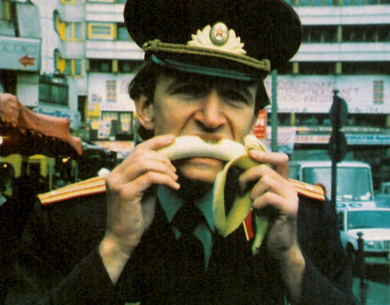 A major of Red Army is late for the train that takes Soviet's forces from Berlin. He telephones to Moscow and finds out that his wife has left him and that someone has moved in his apartment. He decides to stay in Berlin and does so by staying in no man's lend between two Berlins. His only property is small tea-urn, parade uniform and white bicycle. His first contacts are with black market and underground. And while he makes first moves in the game of survival, we're getting to know his past.