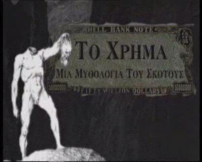 The process of a resurrected Christ for bringing to an end the social nightmare and establishing a poetic paradise through purgatories and hells of Myth and History. With “Money” we are able to trace the root of civilization’s downfall, motivating Christ’s final speech, delivered at the stock exchange. Within this spectacular setting of modern history, the symbol of a forgotten world challenges directly Paternal authority and power, from which springs all that is tragic in the cosmic game. His ultimate death is indicative of the death of civilization itself, from which humanity can expect absolutely nothing anymore, aside from living out the guilt for the lost paradise.
